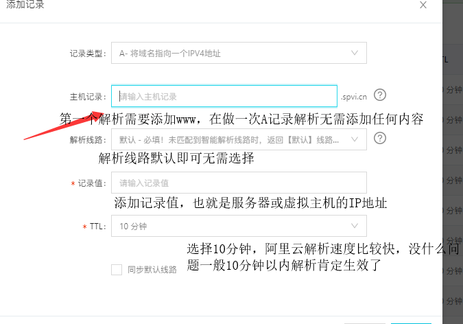 只需要填写主机名、解析类型和对应的值即可。