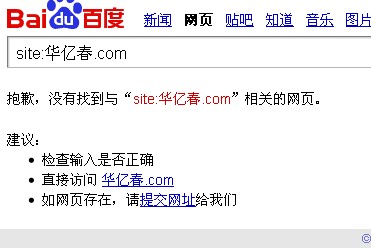 在百度搜索引擎中,根本没有找到site:huayichun.com。上图是百度截图。
