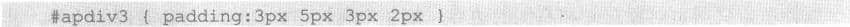 使用没有复合属性的padding属性也可以为网页对象的4个边设置不同的padding值。方法是为padding属性设置多个属性值。当为padding属性设置两个属性值时,第一个属性值定义了网页对象顶部和底部的padding,而第二个属性值定义了网页对象的左侧和右侧。 Side padding,其代码如下所示。