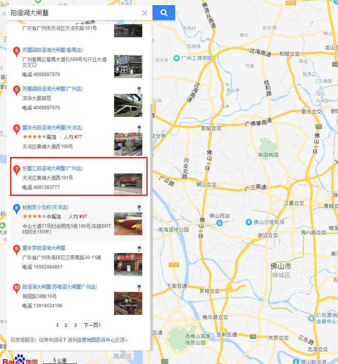大闸蟹阳澄湖大闸蟹40个关键词百度地图排名案例