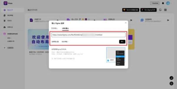 回到 Pixso 中,将复制的 Figma 文件链接粘贴到 URL 导入的输入框中,点击右下角的「导入」,就可以将 Figma 文件导入 Pixso 了。