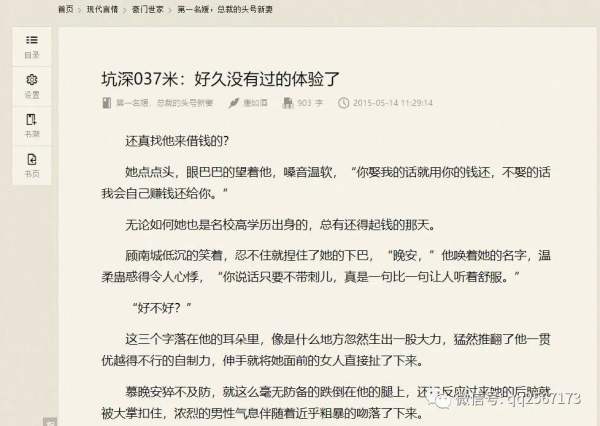 男人喜欢看什么样的内容,这个不要我多说吧?找一些现代都市言情小说,很容易找到如上图这样类似的章节。 内容可以非常暧昧,但是一定不能“黄”,这个明白吧,这个是底线,如果传播黄色小说的话,就要进橘子了。