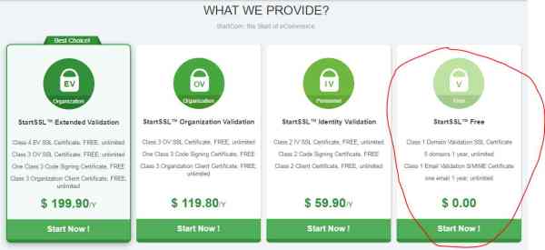 向CA机构申请证书一年少者几十多者数千美元,很不划算,好在互联网上总不缺免费午餐,StartSSL就是很好的选择。