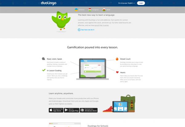 还是以多邻国为例,它在登录页面强化阐述了产品信息