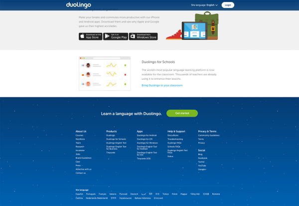 多邻国的登录页面底部,放置了一句号召语,呼吁目标用户赶紧体验产品