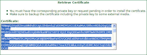 Tool Box - Retrieve Certificate,选择申请证书的域名,将框中的内容保存为.crt文件。比如ssl.crt。这个就是证书文件啦。