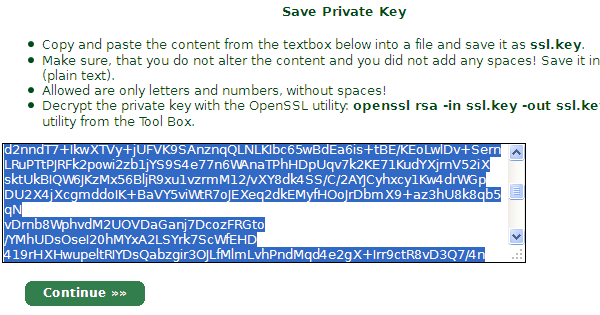 使用Tool Box - Decrypt Private Key,将前面生成的ssl.key的内容解密。将结果保存为.key文件。比如ssl2.key。