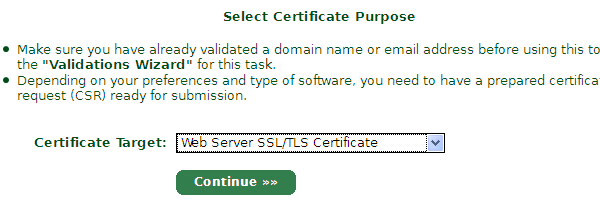2)再到Certificates Wizard选择要申请证书的类型