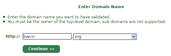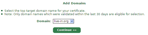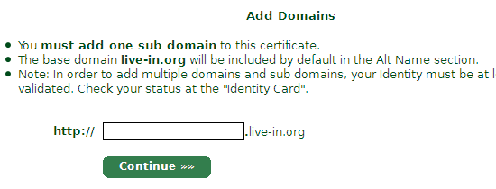 输入要申请的域名,点击Continue。