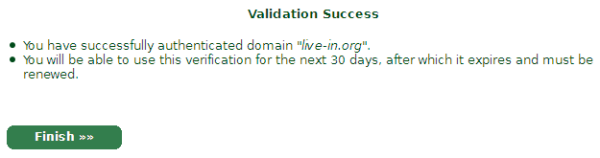域名验证成功,这次验证在30天内有效,过期了要重新验证。点击Finish回到控制面板。