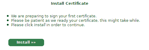 Your first client certificate has been installed into your browser. This is a bootstrapping certificate for authentication purpose.