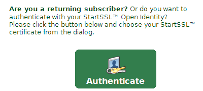 startssl不使用密码来验证,而只用证书来认证。证书安装好之后记得保存(网盘之类的地方),否则需要重新申请账号再和startssl联系合并账号。