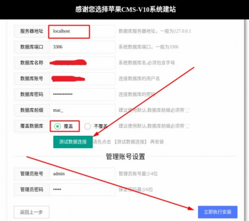 打开你的域名,会自动跳转到程序安装界面,设置好数据库以及你的账号和密码,然后登录后台;