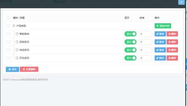 BossCMS是一款基于自主研发PHP框架+MySQL架构的内容管理系统,系统不依赖于任何框架,完全拥有自主知识产权,能够满足各类网站开发建设的需求,目前被众多个人开发者及中小型企业使用,市场反响良好。采用MVC模块式开发,增加了系统的维护性、可扩展性,使二次开发变得简单、容易。源码简洁、无冗余代码,源代码支持私有化部署,保证了系统运行速度,提升了服务器加载速度和安全性。系统开源、安全、稳定、简洁、易开发、专注为中小型企业及政企单位、个人站长、广大开发者、建站公司提供一套简单好用的网站内容管理系统解决方案。