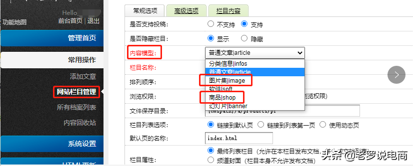 (织梦CMS内容模型类型图)