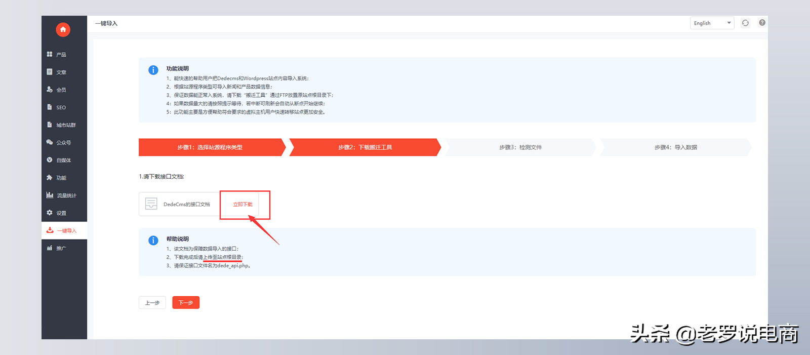 能快速的帮助用户把Dedecms和Wordpress站点内容导入系统。