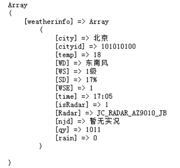第三步,将返回的字符串转换成php变量: